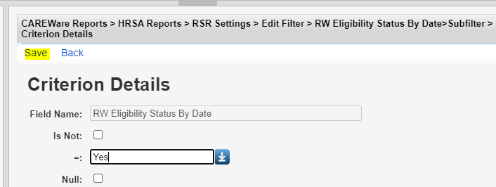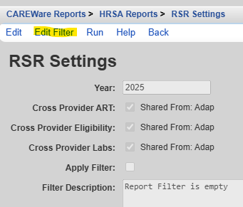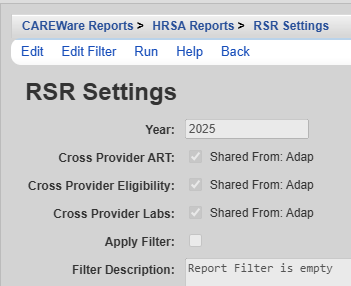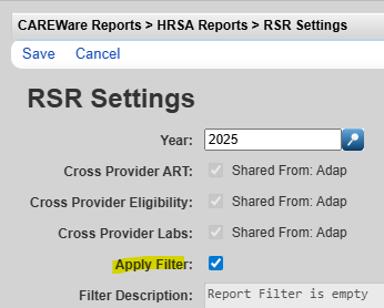 Cross-Provider Eligibility – If checked, clients eligible for RW funded services in any provider listed are considered eligible in the provider running the RSR Client Report, even if that client lacks an Eligibility History record in that provider.