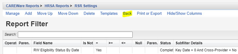 - Once all filters are added, click Back.