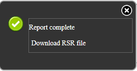 Once the RSR Client Report is generated, a "Report complete" message appears. Click Download RSR file to save the file.