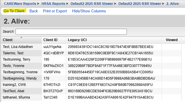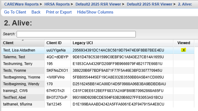 The RSR Viewer shows aggregate counts of the clients reported on the RSR. Users can find clients easily and adjust any incorrect clinical data in client records by accessing the client records through the RSR Viewer. The instructions for creating an RSR can be found by clicking here. It also includes calculations for the completeness of the data, including quarterly calculations for services, labs, and linkage to care as well as calculations for racial subgroups.