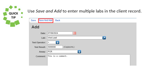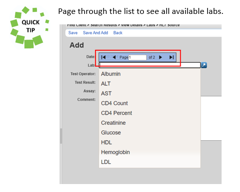 Clinical data management in CAREWare 6 includes labs for the Ryan White Services Report (RSR), Clinical Quality Management, and other Ryan White requirements. Labs may also be used for the Client Summary and Provider Summary in CAREWare.