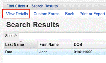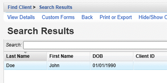- Click Client Search.