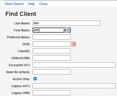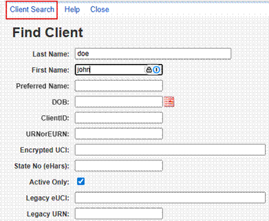 - Type in a client's identifying information.