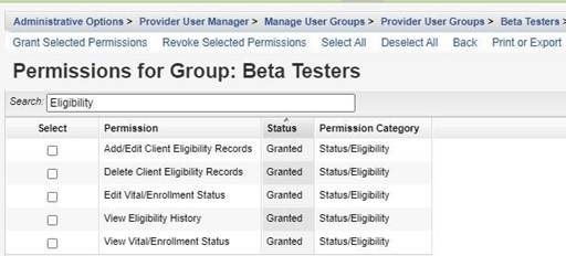 - Repeat until all Status/Eligibility permissions are granted.