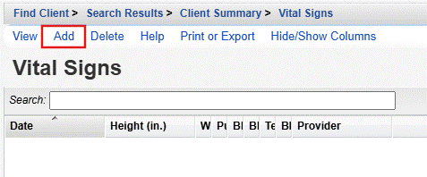 Hide/Show Columns: Hide or show columns in the list of vital signs records.