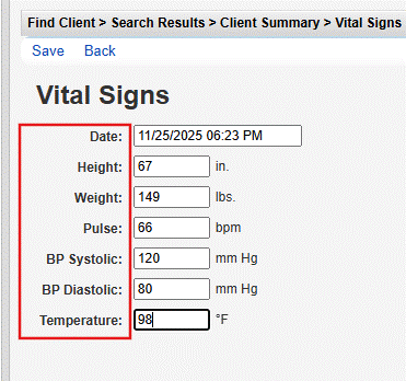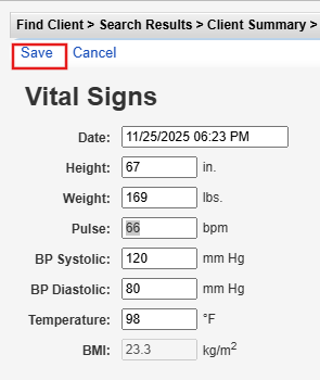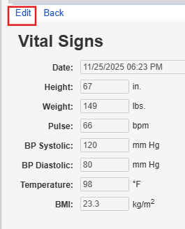 NOTE: If height and/or weight are edited, the BMI is automatically recalculated based on the new values.