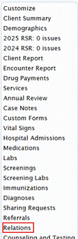 1. Click Relations in the index or dependent client record.
