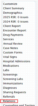 Users can track related clients using the Relations tab in client records, including: