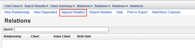 Append Relation: Add a new Relations record.
