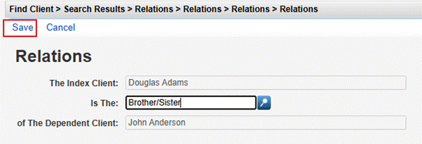 CAREWare automatically adds the corresponding Relations record to the dependent client.
