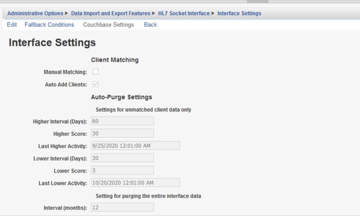 CAREWare also provides optional manual client matching functionality (screenshot below). Admin users can use this to review and match patient records within the provider that have been identified by the Map Provider process. Once enabled, Manual Client Matching is available across all providers importing data through the HL7 Socket Interface. An option to automatically add clients in case of a mismatch is available as well. It is recommended to use the "Auto-Add Clients" (screenshot below) with great caution because that could potentially increase the clients within the provider to unmanageable levels.